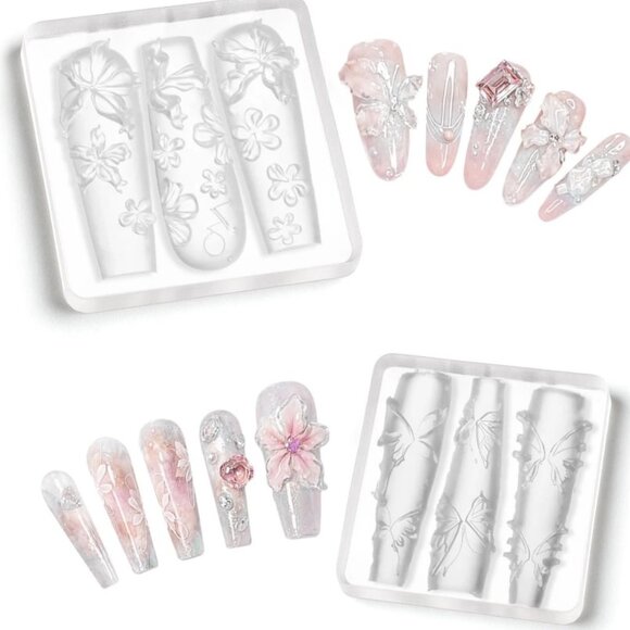 2PCS 3D Flower Mold for Nails, Flower Silicone Nail Art Molds, Reusable DIY