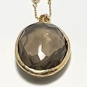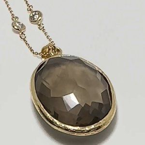 2PCS-BROWN TOPAZ QUARTZ CRYSTAL PENDANTS ON A GOLD (.925 BASE) VERMEIL ,1/8" CZ NOTHING NECKLACE.