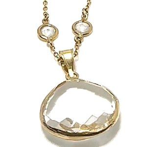 2PCS-CLEAR QUARTZ CRYSTAL PENDANTS ON A GOLD (.925 BASE) VERMEIL ,1/4" CZ NOTHING NECKLACE.