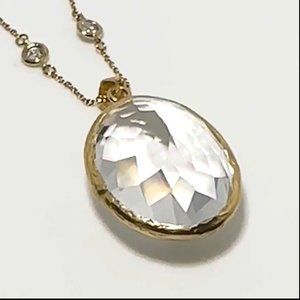 2PCS-CLEAR QUARTZ CRYSTAL PENDANTS ON A GOLD  (.925 BASE) VERMEIL ,1/8"  CZ NOTHING NECKLACE. PENDANT SIZE: 1 ′ X 3/4″ INCH CHAIN LENGTH: 16″-18" INCHES THIS LISTING IS FOR 1 PENDANTS AND  1 CZ GOLD CHAIN.  1/8″ INCH CUBIC ZIRCONIA CHAIN (.925 STERLING SILVER BASE $14KT GOLD TOP) 2 NECKS IN 1 BECAUSE YOU CAN WEAR THE CHAIN WITHOUT THE PENDANT. ALL JEWELRY SHIPPED IN GIFT BOXES