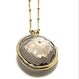 2PCS-LIGHT BROWN QUARTZ CRYSTAL PENDANT WITH GOLD BALL CHAIN NECKLACE-VERMEIL