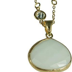 2PCS-WHITE QUARTZ CRYSTAL PENDANT ON A GOLD (.925 BASE) VERMEIL ,1/4" CZ NOTHING NECKLACE.
