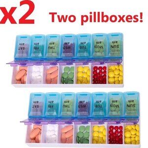 2PCs Weekly Pill Box Organizer 7 Day AMPM Organizer Case Medicine Removable Pill