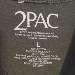Classic graphic short sleeve t-shirt, featuring 2PAC by Amaru Entertainment, size large. Unisex tee listed as a women's, but please see measurements below. 100% cotton tee; excellent pre-owned condition overall; looks like band on inside collar is loose. Please see close-up pictures for more details.