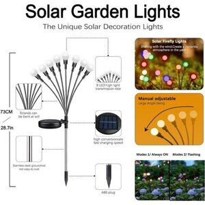 Energy Efficient and Eco-Friendly: As solar garden lights, they harness sunlight during the day and provide a stunning glow at night, saving you money on electricity bills while being environmentally friendly.