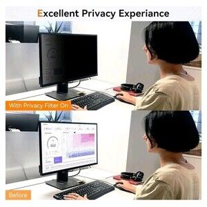 This blackout privacy screen greatly reduces eye strain and minimizes potential hazards to visions. It filters 99.9% of UV rays and suppresses 98% of blue light. As a reversible 24-in privacy screen filter the glossy side of the protector provides ex