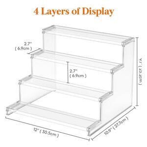 2-Pack, 4 Tier Clear Display Riser Stand, Tool-free Assembly, 12 Inch Organizers