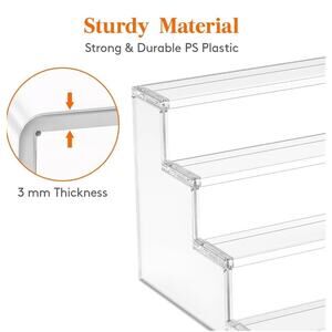 * Sturdy Material: The transparent display riser is made of 3 mm high-purity and high-thickness plastic. The embedded design makes the panel sturdy and can accommodate items of different weights.