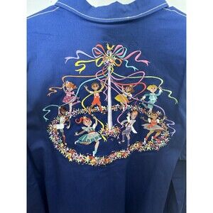 The 2-Pack of Bob Mackie Wearable Art Maypole Button Down Shirts in size Large is a multicolored top designed for women. The shirt features an embroidered Maypole design, making it a unique and stylish choice for casual or travel occasions. Made from a down fabric, this button-up shirt is perfect for all seasons and is sure to make a statement with its artistic theme and colorful accents.