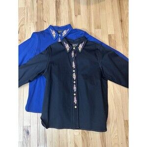 2-Pack - Bob Mackie Wearable Art Maypole Button Down Shirts L Blue and Black
