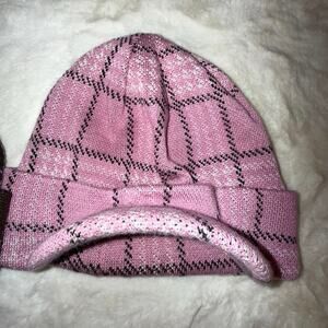 2-Pack PUGS Plaid Knit Visor Beanies Pink + Brown NWT + EUC
