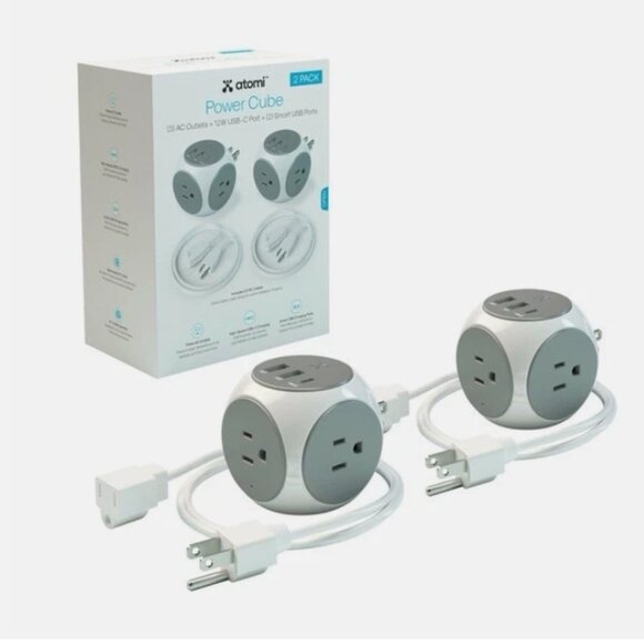 2-Pack Power Cube 3AC Outlets + 3 Smart USB Ports(2 USB-A & 1 USB-C)