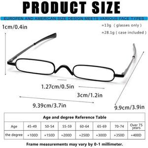 - Includes two ultra-slim reading glasses with sleek pen-style storage cases for easy portability