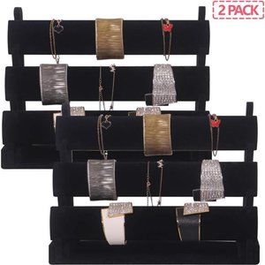 2Pack Velvet Bracelet Holder with 3Tier Rack, Jewelry Display Stand Watch Bangle