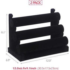 1, FASHION DESIGN: Set of 2 Black. The bracelet display a 3-Tier sloping design to provide a professional and elegant display. This jewelry stand measures 12.0 x 6.9 x 9.1 inches. Components that can be disassembled can be carried out and stored.