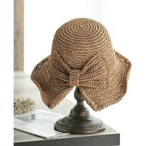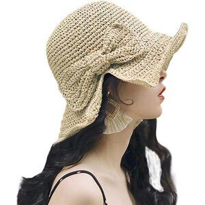 2Pack Women's Foldable Wide Brim Floppy Straw Sun Hat with Bowknot