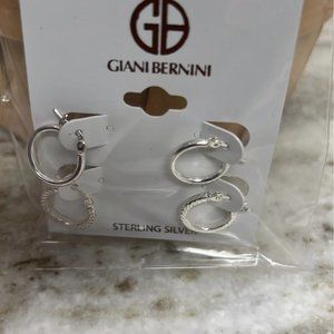 2-Pc. Set Polished & Textured Hoop Earrings in Sterling Silver
