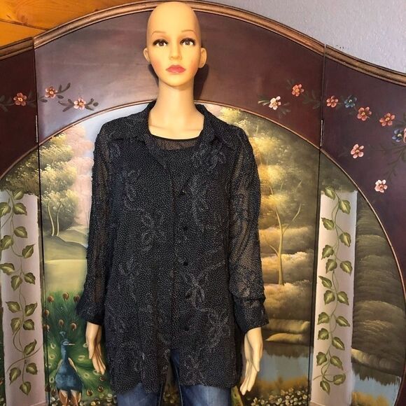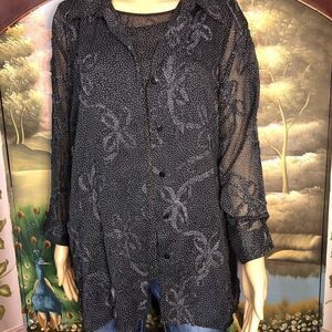 Long Sleeve Blouse with matching lined Sheer Covered Camisole