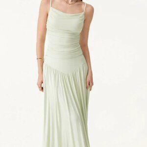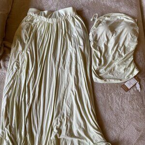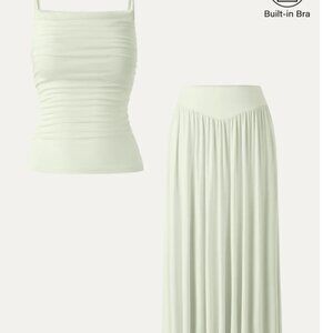 2Pcs Set Adjustable Spaghetti Straps Brami & V-shape Maxi Skirt with Pockets