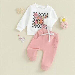 - Size: Suitable for infant fall clothes girl 0-6 months 6-12 months 12-18 months 18-24 months, 2T 3T, matching sister outfits boys sweatsuit set. Please check the size chart carefully before buying to get the clothes that fit your size.