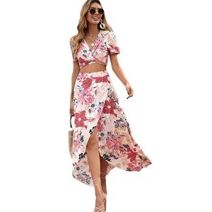 2-Piece Boho Crop Top+Maxi Skirt Set