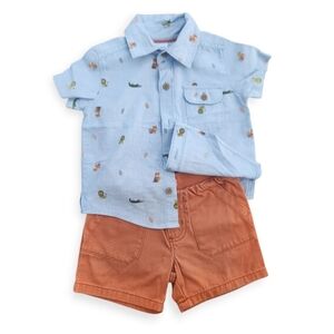 2-Piece Carter's Baby Kids Light Blue Shirt Orange Shorts SetSize 12 Months