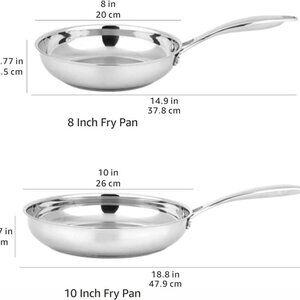 2-Piece Oven Safe, Stainless Steel Induction Frying Pan, Silver, 8" & 10"