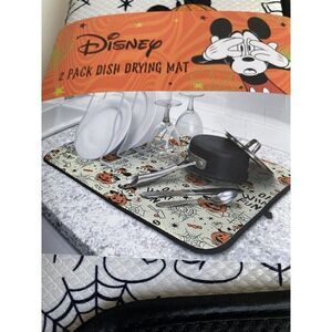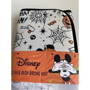 2 Pack Disney Mickey Mouse Halloween Drying Mat 16”x18” Pumpkins Spider Webs Candy NEW.