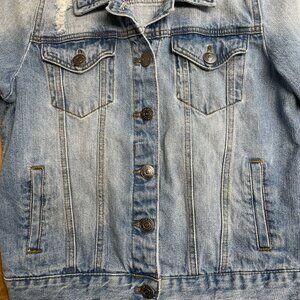 2SABLE JEAN JACKET DISTRESSED BUTTON UP POCKETS SIZE M DENIM BLUE 100% COTTON