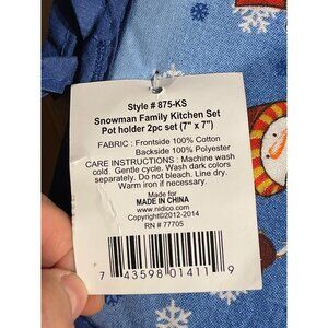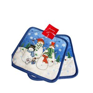 Celebrate the season with this vibrant snowman-themed pot holder set. The 2-piece set is designed for functional kitchen use and festive holiday decor.