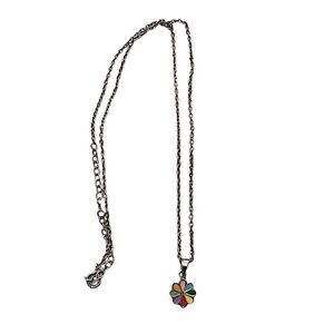 2 Sterling Silver Children’s Necklaces - Cross & Colorful Flower Pendants