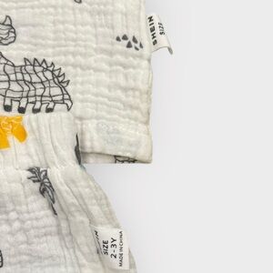 • Cream/blue muslin dino two-piece set with matching sun hat (SHEIN)