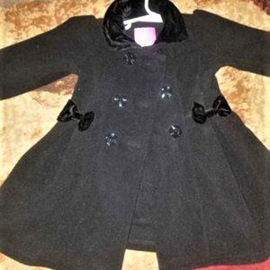 2T - Girls Beautiful Christmas Deep Red Rose and Black Dress . Used once. Excellent condition. Also the Black Pea Coat, also in excellent shape. the outfit together is stunning. The Pea coat is also 2T.