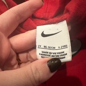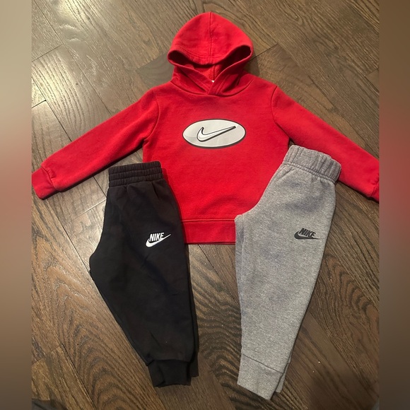 Toddler boy size 2T. Nike brand. One pullover hooded sweatshirt and two pairs of sweatpants. All in great condition. Comes from a clean, pet free and smoke free home.