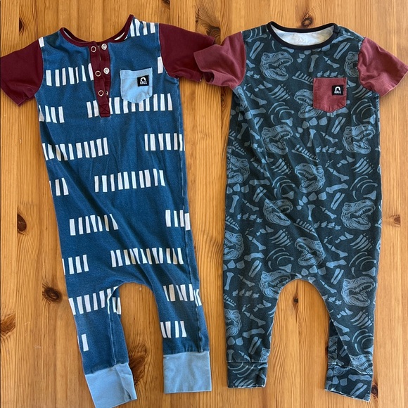 Soft, breathable one-piece rompers from Rags, with short sleeves for easy wear. 2T. Fading from washing over time.