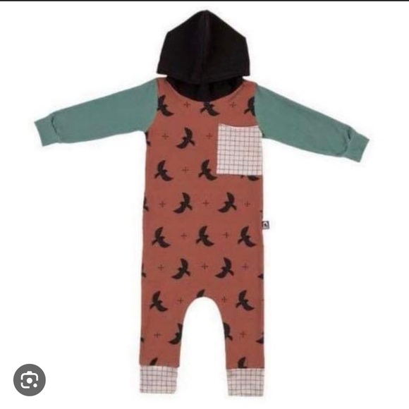 Size 2T Rags long-sleeved romper with hoodie. In good condition and from a smoke-free, pet-friendly home.