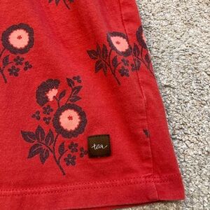 Size 2T Tea Collection long sleeve dress. Red with medallion flower pattern. Faux wrap design. Soft cotton, excellent quality fabric. Smoke free home.