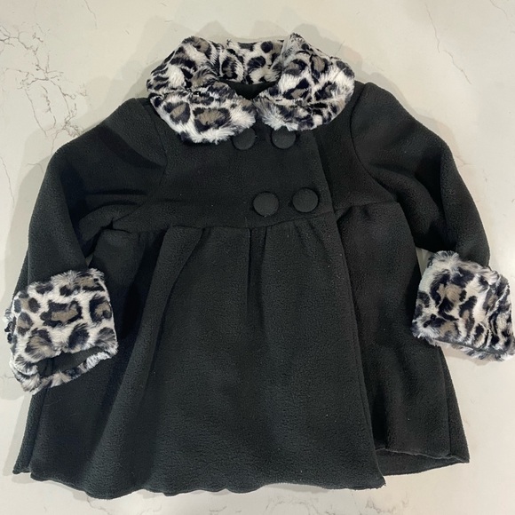 Keep your child warm and stylish with this elegant black coat featuring a chic faux fur trim. Perfect for any occasion.