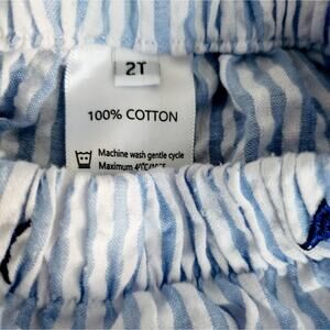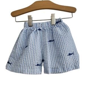 cotton pull on striped shark embroidered pull on shorts. elastic waist 2T. excellent condition