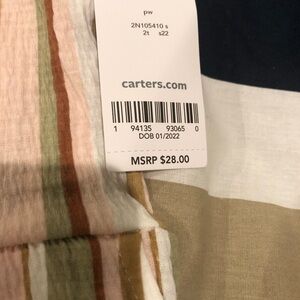NWT Carters romper. Striped pattern. Size 2T. Cute little bow in the center.