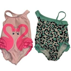 2T/24M Toddler Girls Swimsuit Bundle Flamingo Ruffle & Leopard Print One-Piece
