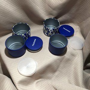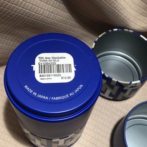 2Teavana stackable tea tins, they hold 4oz of loose tea, brand new items, made in Japan. Each of the containers on each of the tins has its own lid (see pics). You get **two** tea tins.