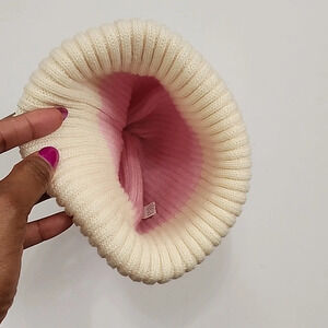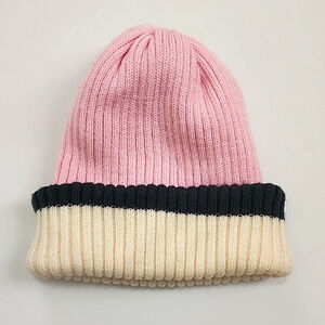 2-Tone Womens Pink & Cream & Grey Beanie Fold Hat
