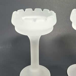 Set of 2 Vintage Partylite Castle Turret Frosted Satin Glass Candlestick Holders.