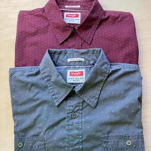 2-Wrangler Burgundy and Charcoal Button-Up Shirts