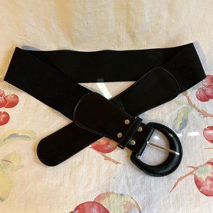2X 3X Versatile Black Elastic and Faux Leather Belt 2.5" Wide 34"-50"+ Length