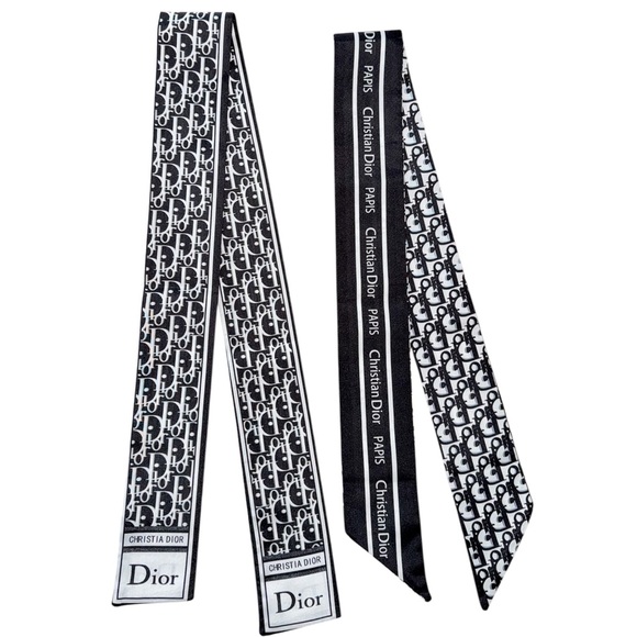Stylish Luxury Silk wrap with a striking black and white pattern. Perfect for adding elegance to any bag or outfit.