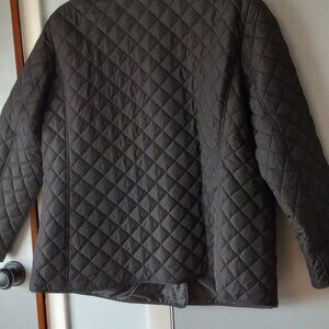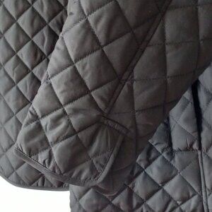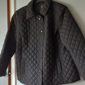 Jones New York black quilted snap front closure with polyester lining with 2 exterior pockets.