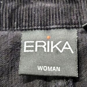 This listing is for a soft, lined Black corduroy jacket by ERIKA. Excellent used condition. No visible signs of previous wear or use.