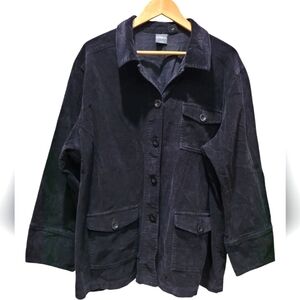 2X ERIKA 100% Cotton Black Blazer Corduroy Button Down 3 Pockets